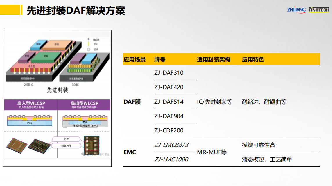 之江公司立足于中國膠粘劑行業領軍企業和有機硅、聚氨酯、環氧等專業膠粘劑的產業化優勢,具有國家級高新技術企業和國家級企業技術中心資質,依靠國家級CNAS實驗室以及國家級博士后科研工作站,并有國際專家助力,為半導體封裝行業提供高性能的芯片粘接和封裝解決方案。其中,關鍵產品如下: